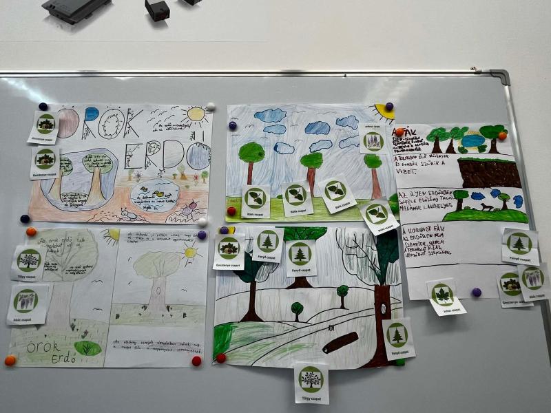 A második napon az „örökerdő” fogalmával ismerkedtek meg egy különleges, mozgásos-kooperatív tanulási módszer segítségével. A tanulók egymástól gyűjtöttek információkat, majd közösen plakátokon rendszerezték a megszerzett tudást, miközben megértették az erdő folyamatos megújulásának jelentőségét.