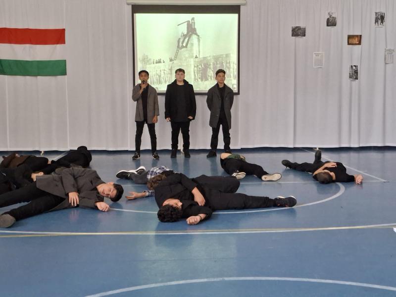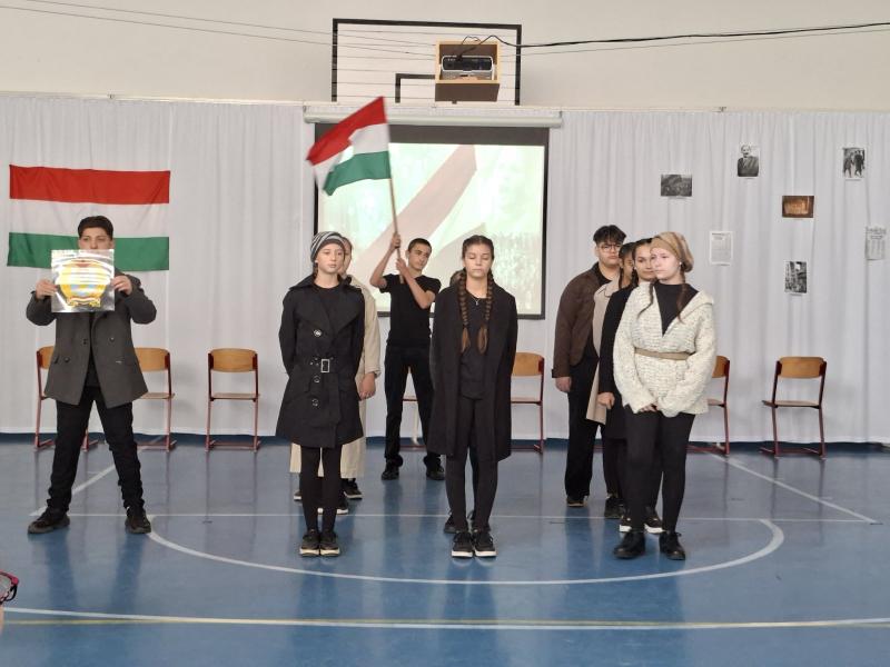 Az iskola hetedik osztályos tanulói megható és tartalmas műsorral idézték meg a 69 évvel ezelőtti eseményeket. A színpadon megelevenedtek a forradalom pillanatai: a fiatalokból lett tüntetők lelkesedése, a bátor kiállás a szabadságért, valamint a forradalom fájdalmas, de reményt keltő napjai.