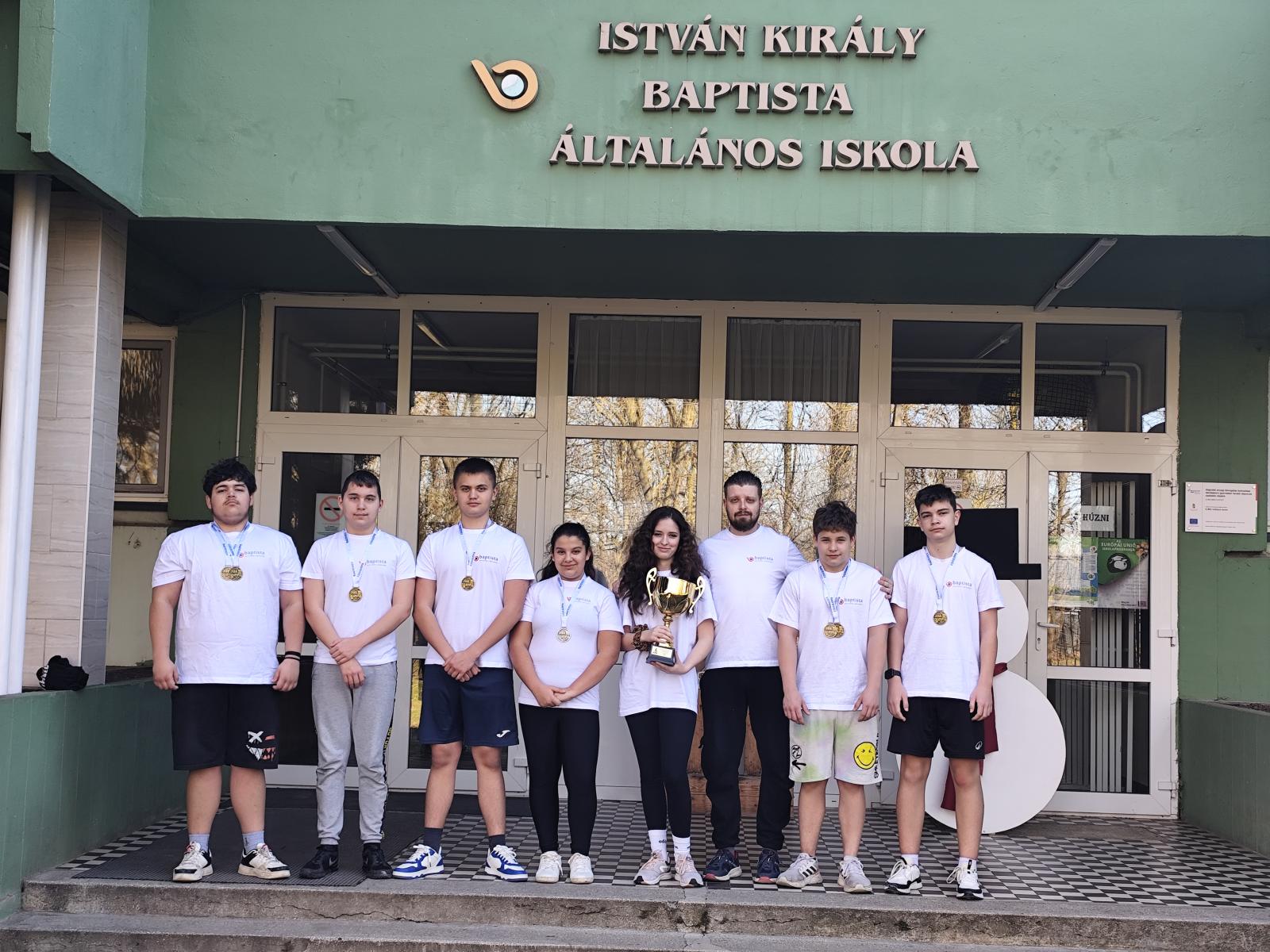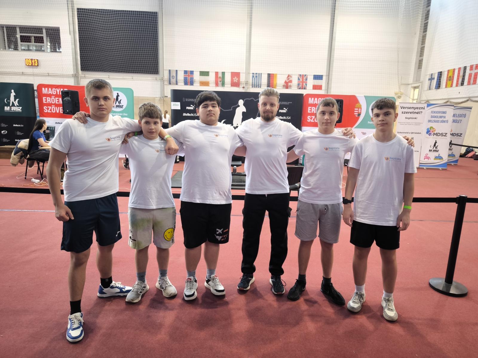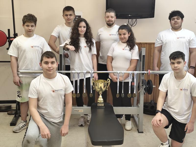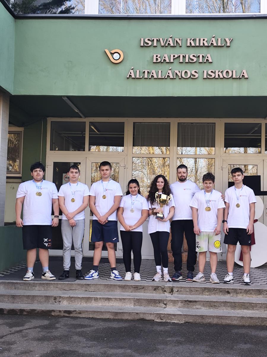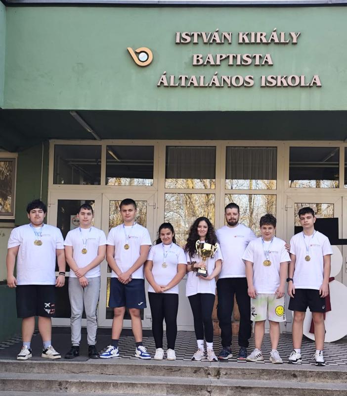 Óriási sikert értek el az István Király Baptista Általános Iskola (Kótaj) diákjai a 2025/2026-os Fekvenyomó Diákolimpia Döntőjén. A IV. korcsoportban versenyző fiaink a csapatbajnokságban első helyen végeztek, így minden versenyző nyakába aranyérem került, és egy hatalmas kupával öregbítették intézményünk hírnevét.